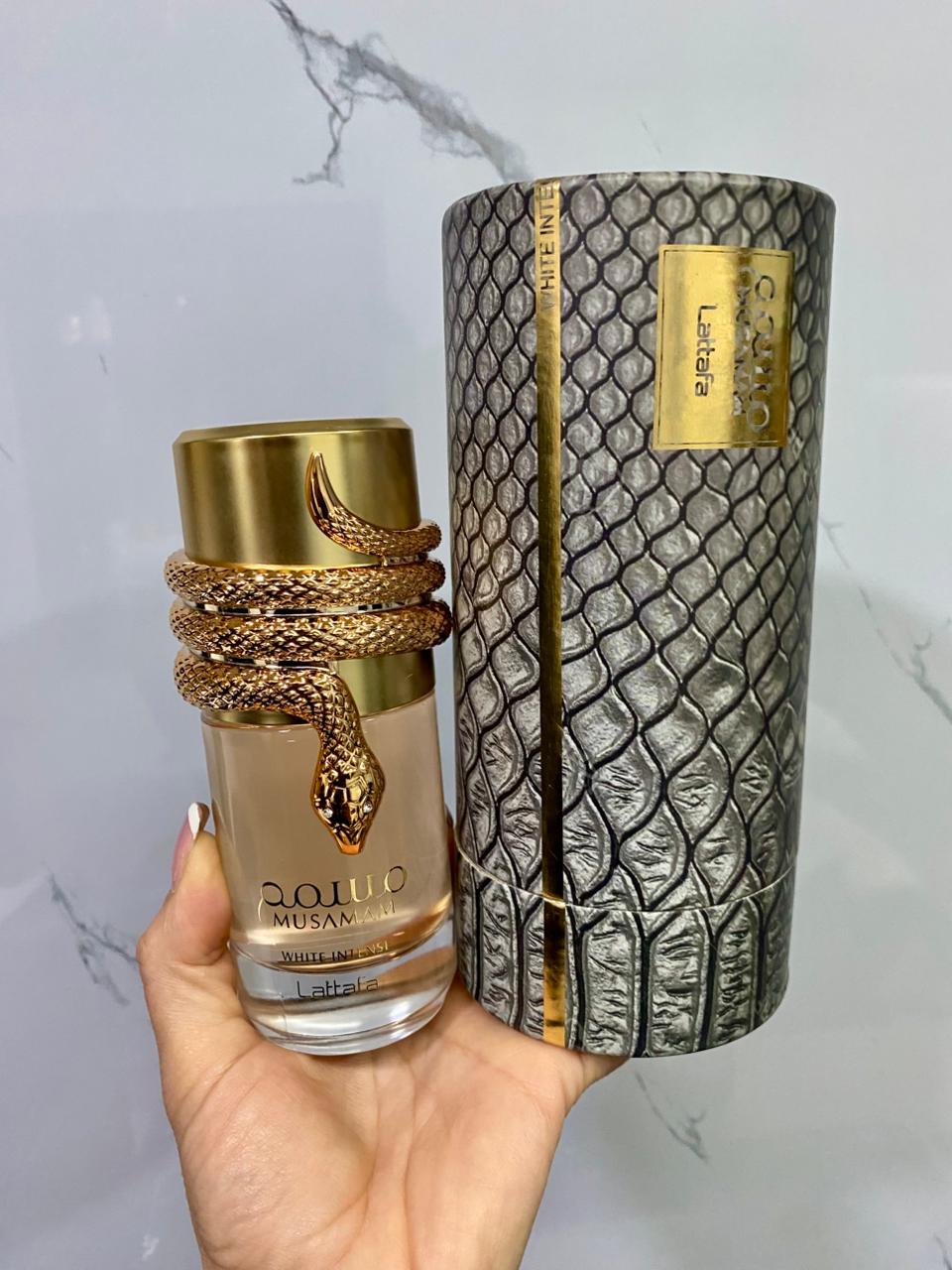 Musamam White Intense de Lattafa Perfumes es una fragancia de la familia olfativa Oriental Floral para Hombres y Mujeres. Esta fragrancia es nueva. Musamam White Intense se lanzó en 2023. La Nariz detrás de esta fragrancia es Gaël Montero. Las Notas de Salida son especias, bergamota y naranja; las Notas de Corazón son coco, ylang-ylang, ambroxan y Mahonial; las Notas de Fondo son sándalo, almizcle y benjuí.