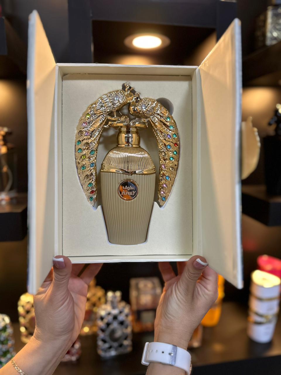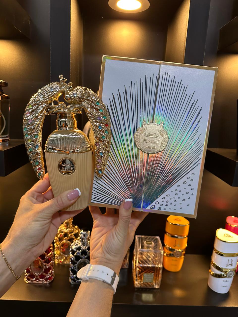 Afeef de Lattafa Perfumes es una fragancia de la familia olfativa para Hombres y Mujeres. Esta fragrancia es nueva. Afeef se lanzó en 2024. Las Notas de Salida son durazno (melocotón), pimienta rosa y bergamota; las Notas de Corazón son nardos, flor de azahar del naranjo y jazmín; las Notas de Fondo son praliné, sándalo, ámbar y pachulí.