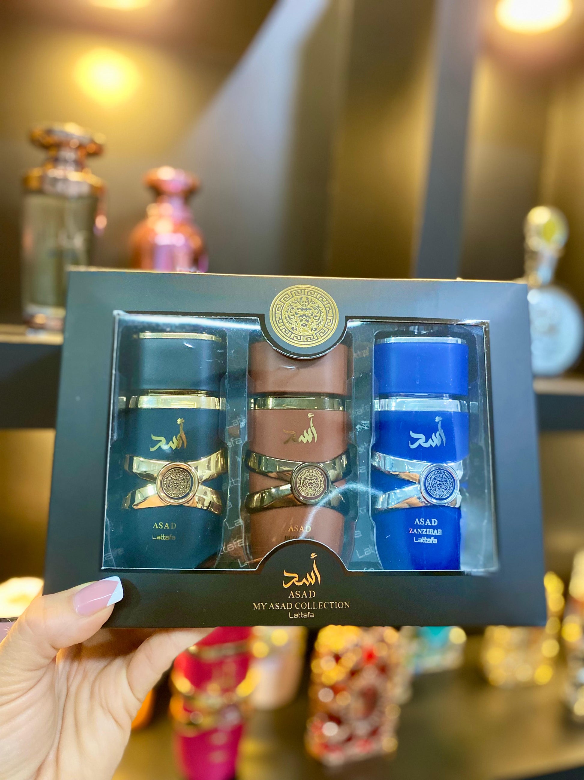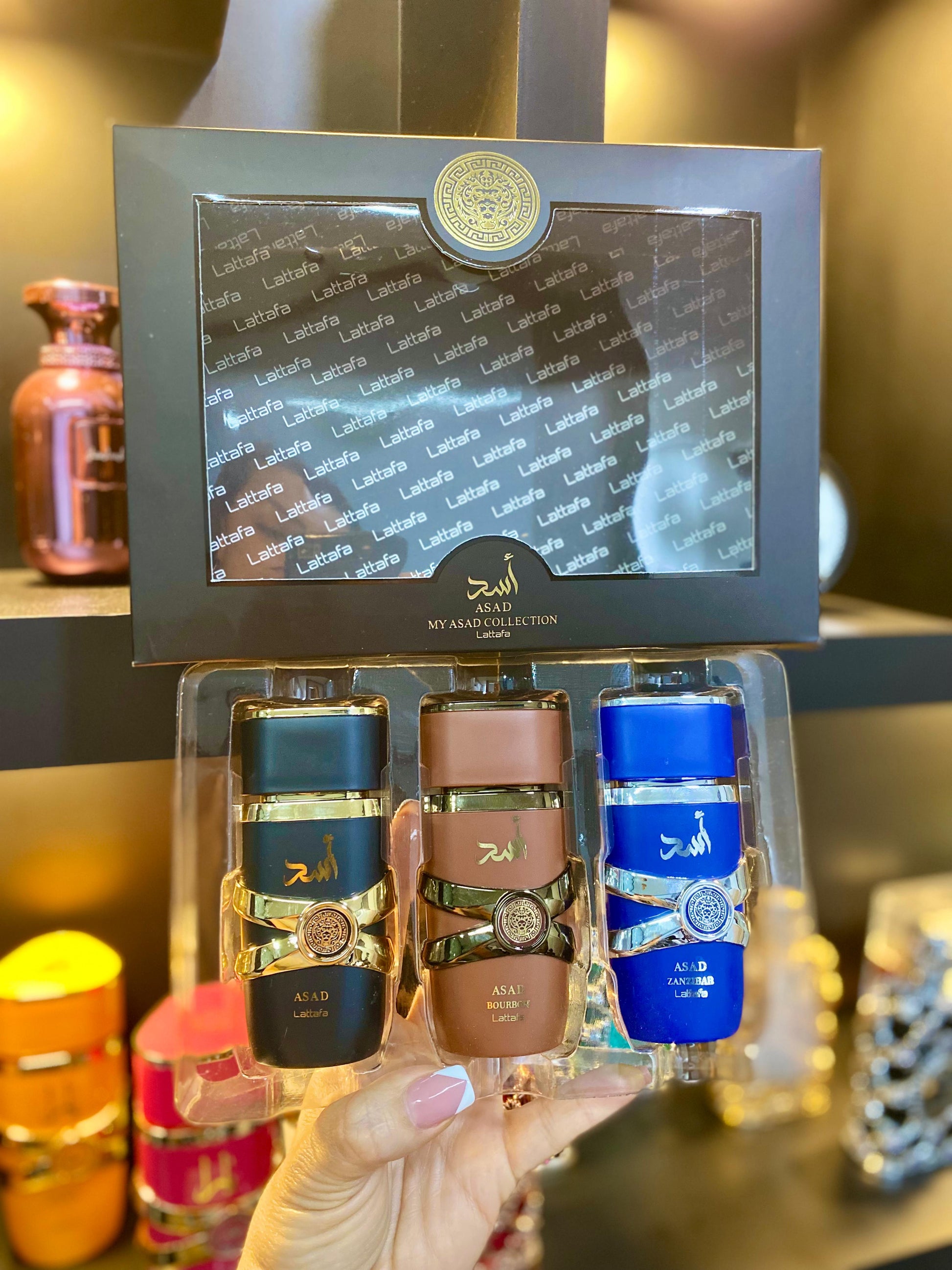 My Asad Collection de Lattafa, un set exclusivo con tres fragancias de 30 ml llenas de carácter y elegancia. Ideal para llevar variedad y sofisticación en presentaciones prácticas y de lujo.