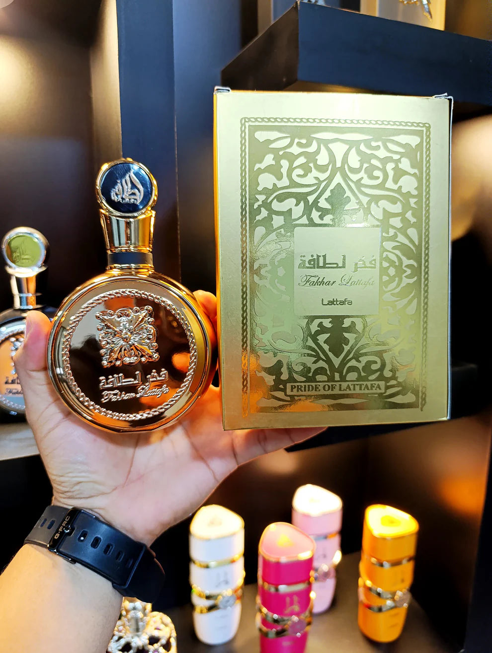 Fakhar Extrait de Lattafa Perfumes es una fragancia de la familia olfativa para Hombres. Esta fragrancia es nueva. Fakhar Extrait se lanzó en 2023. Las Notas de Salida son toronja (pomelo), cardamomo y pimienta rosa; las Notas de Corazón son nardos, notas solares y abrótano; las Notas de Fondo son ámbar, cachemira, cuero y ládano.